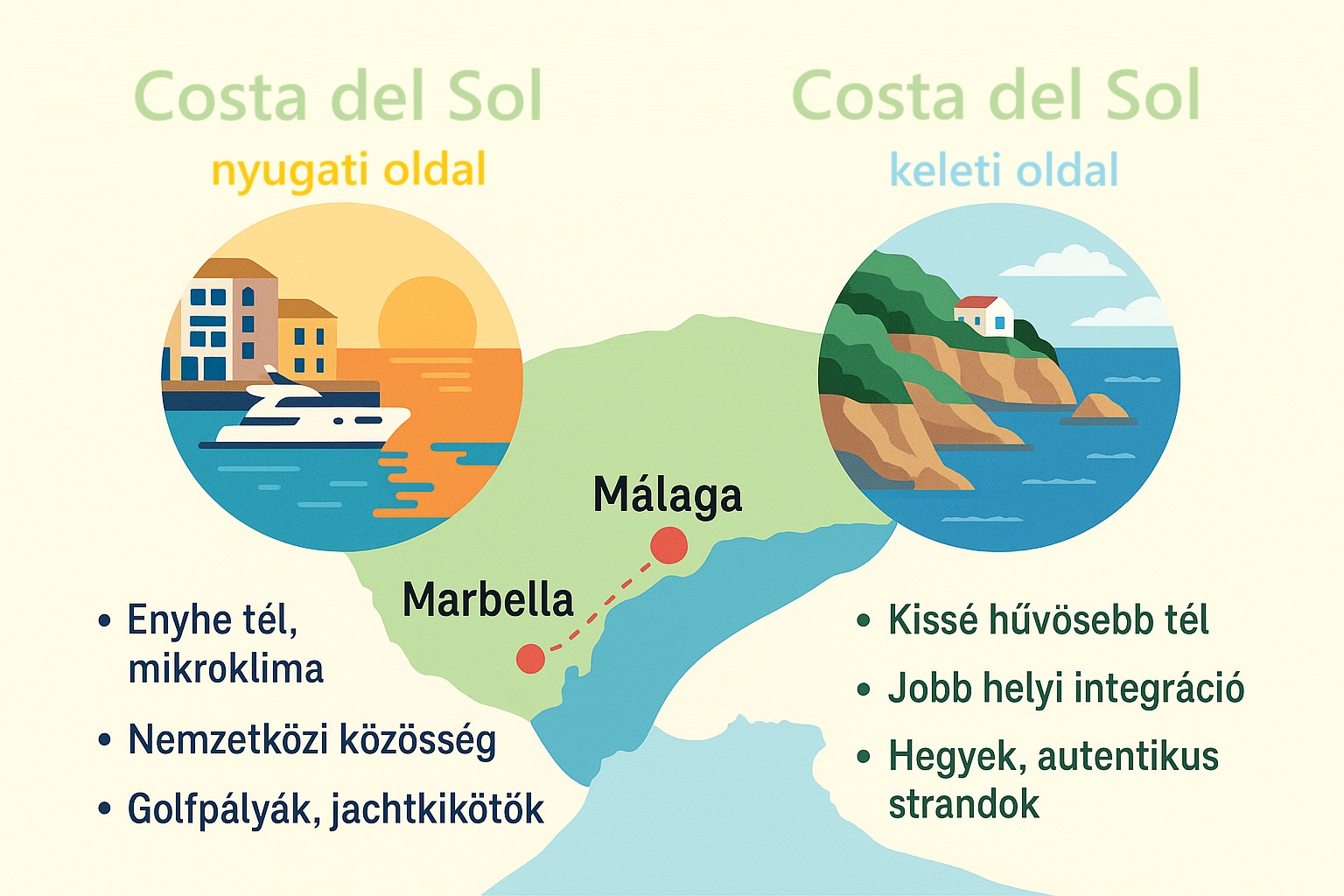 De az, hogy Málaga városától keletre (Nerjáig) vagy nyugatra (Marbelláig) költözöl, alapjaiban határozza meg a mindennapjaidat.